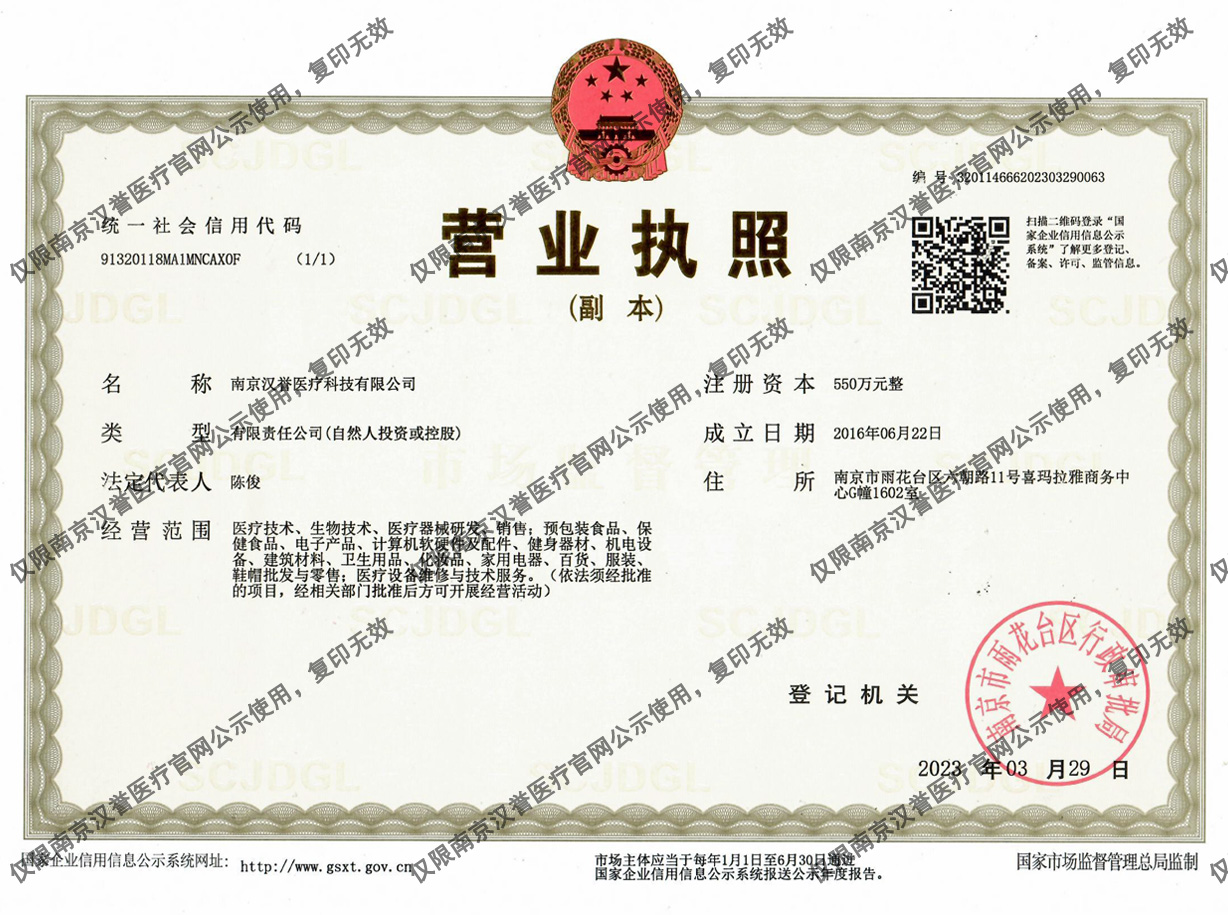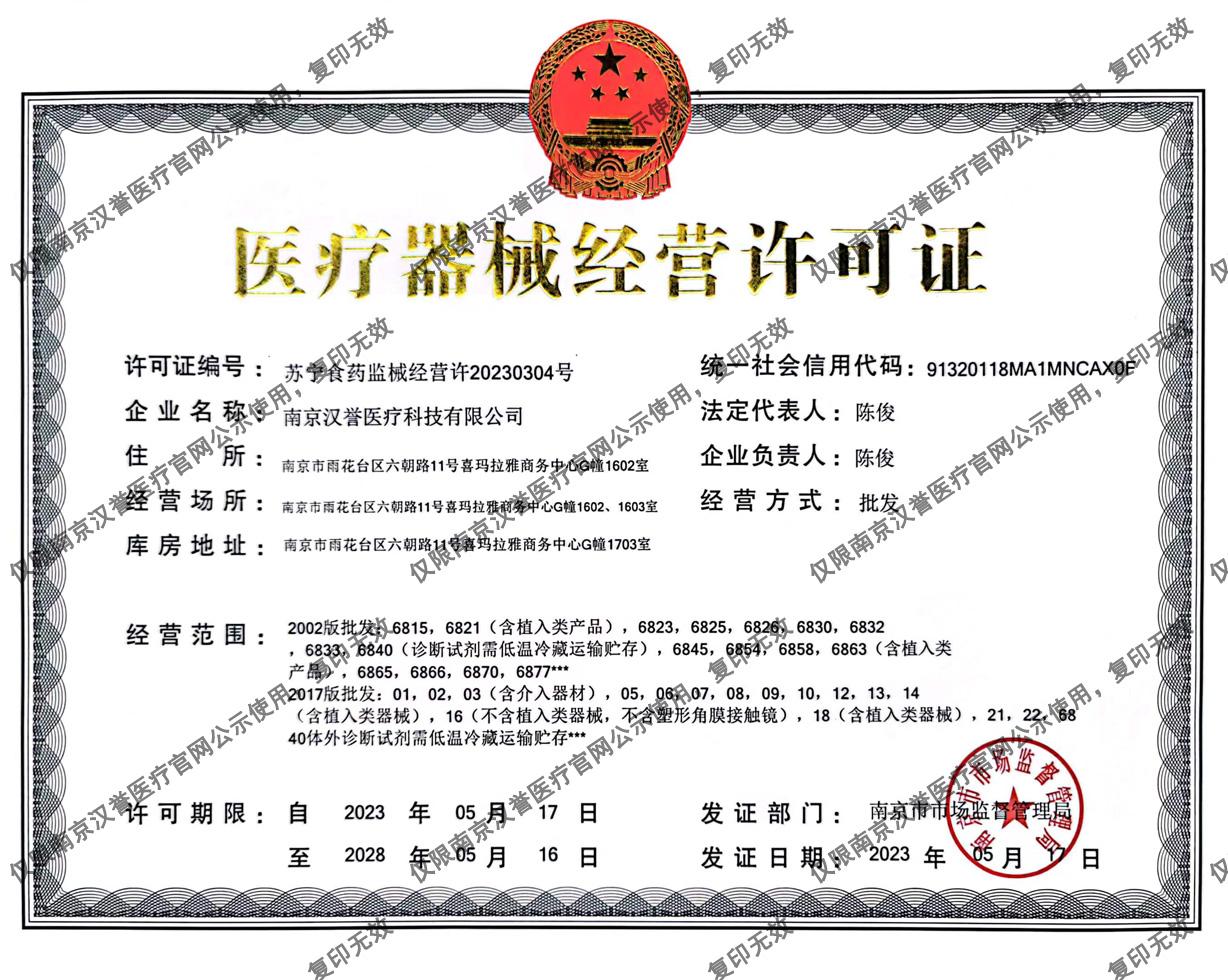 醫(yī)療器械經(jīng)營許可證:蘇寧食藥監(jiān)械經(jīng)營許20230304號(hào)
