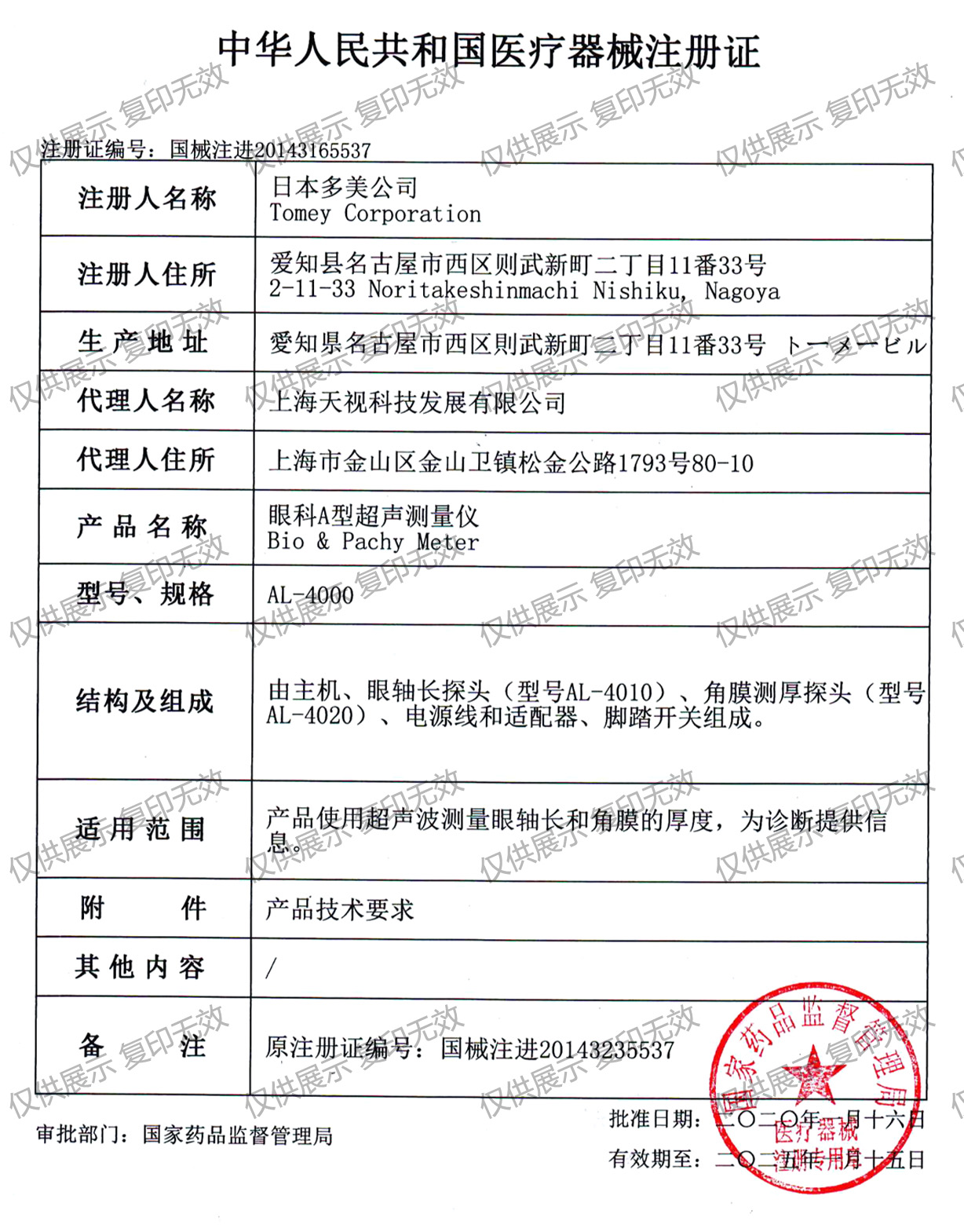 適用范圍:產(chǎn)品使用超聲波測量眼軸長和角膜的厚度,為診斷提供信息。