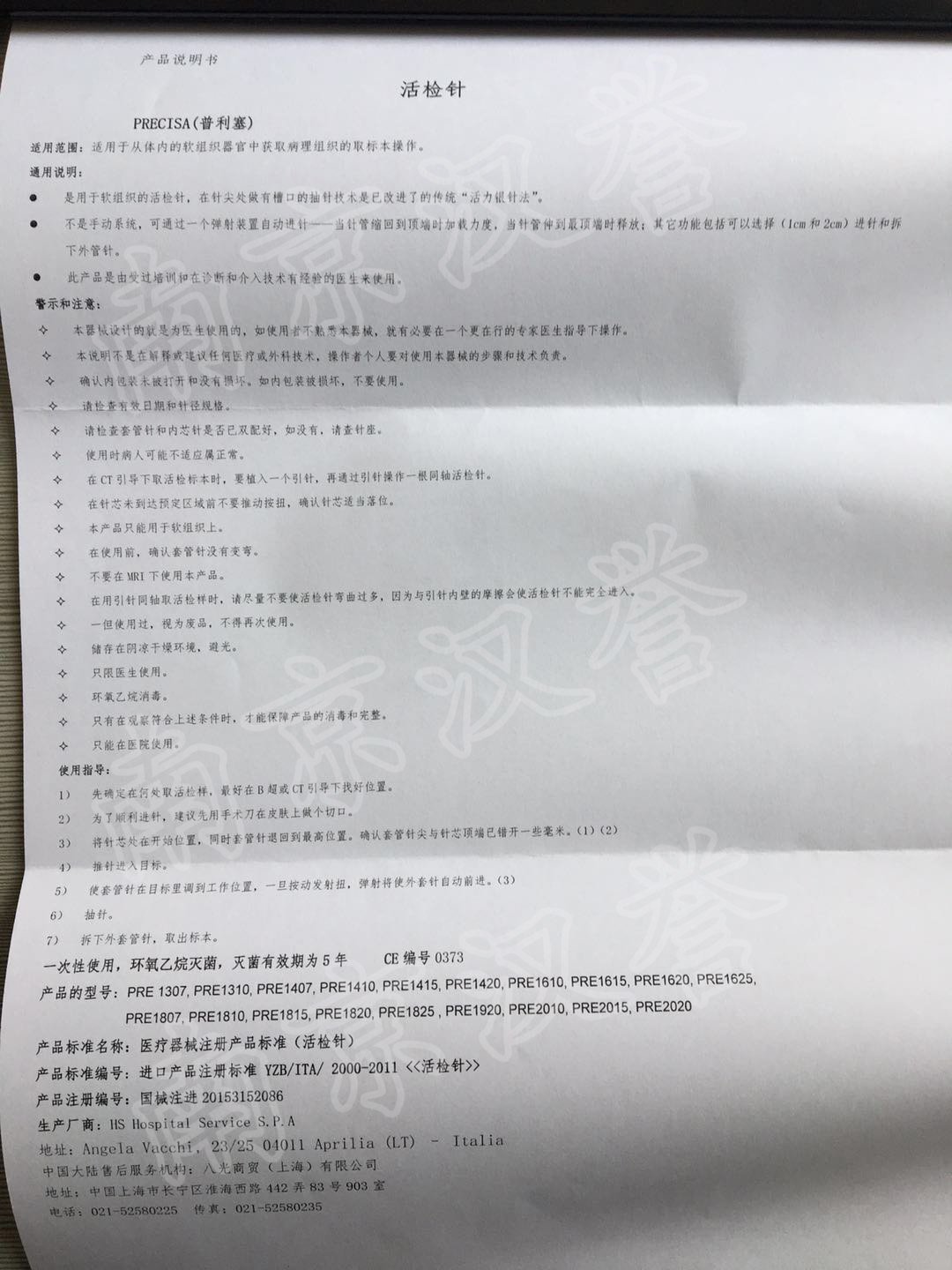 為什么要說這樣一件事呢,小編的意思是有很多時候,你不需要的東西,有可能正是別人夢寐以求的(可能有點(diǎn)夸張哈)。所以哪怕只能盡小小的一份綿薄之力,南京漢譽(yù)醫(yī)療也定不負(fù)所望。為了給更多有需要的人幫助,小編今天就把普利斯活檢針的說明書發(fā)出來分享給大家。