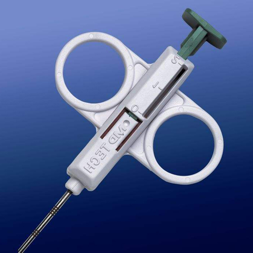 特點(diǎn):輕巧、緊湊,自撐力強(qiáng),可單手操作,快速準(zhǔn)確;鋒利的外管邊沿有助于保障組織的完好無(wú)損;針尖在超聲圖像下可視性強(qiáng);切割組織時(shí),管芯針不移動(dòng);針尖斜面鋒利,扎入時(shí)快速簡(jiǎn)便,對(duì)器官及周?chē)M織損傷??;彈槍式機(jī)械系統(tǒng)快速準(zhǔn)確。
