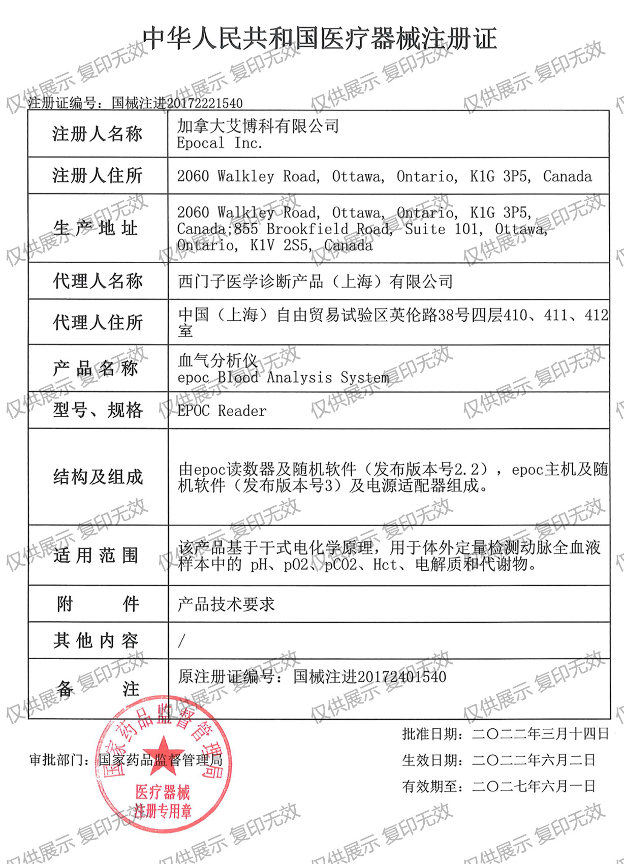 適用范圍:該產(chǎn)品基于干式電化學原理,用于體外定量檢測動脈全血液樣本中的 pH、pO2、pCO2、Hct、電解質(zhì)和代謝物。