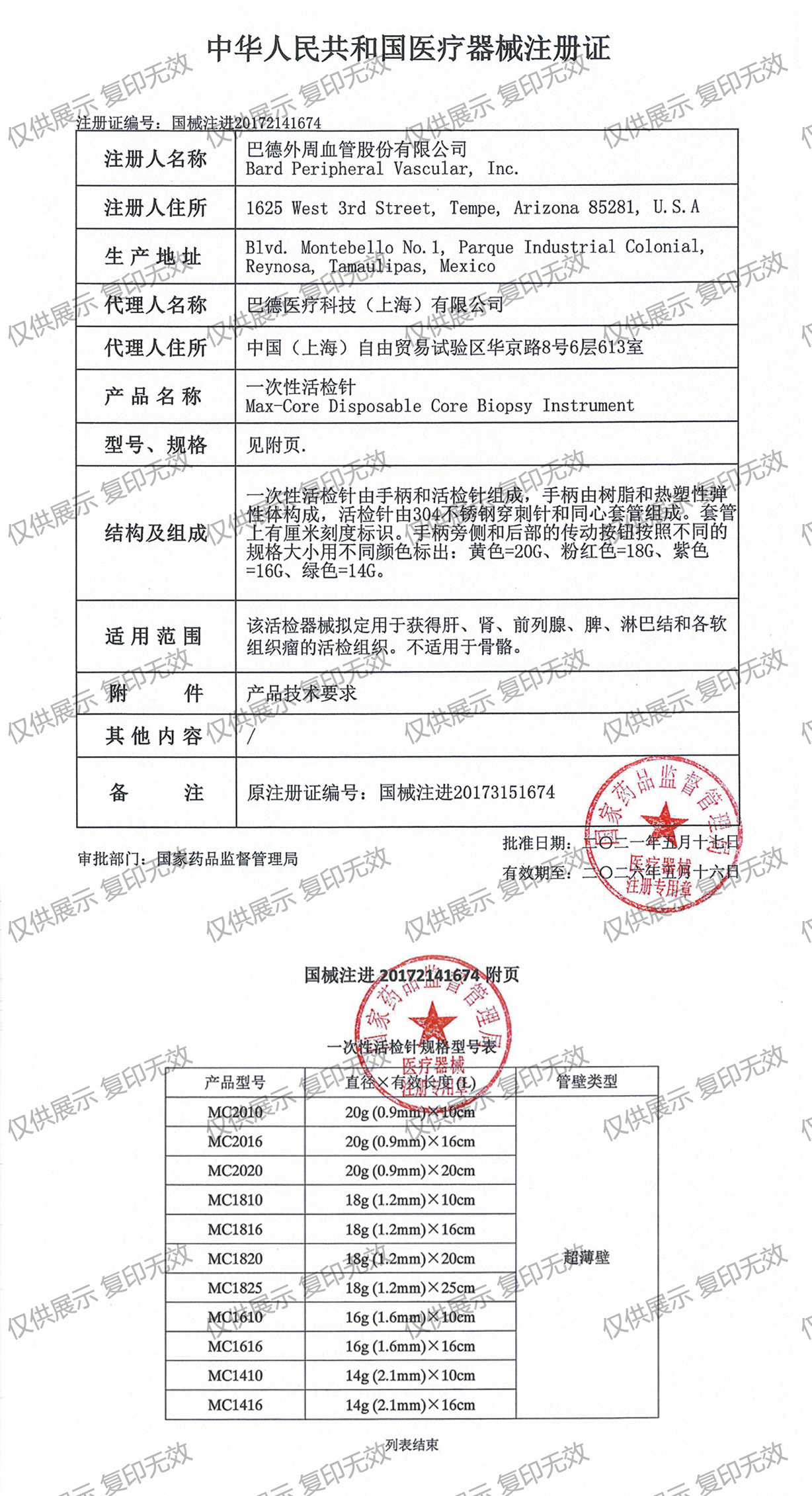 適用范圍:該活檢器械擬定用于獲得肝、腎、前列腺、脾、淋巴結(jié)和各軟組織瘤的活檢組織。不適用于骨骼。