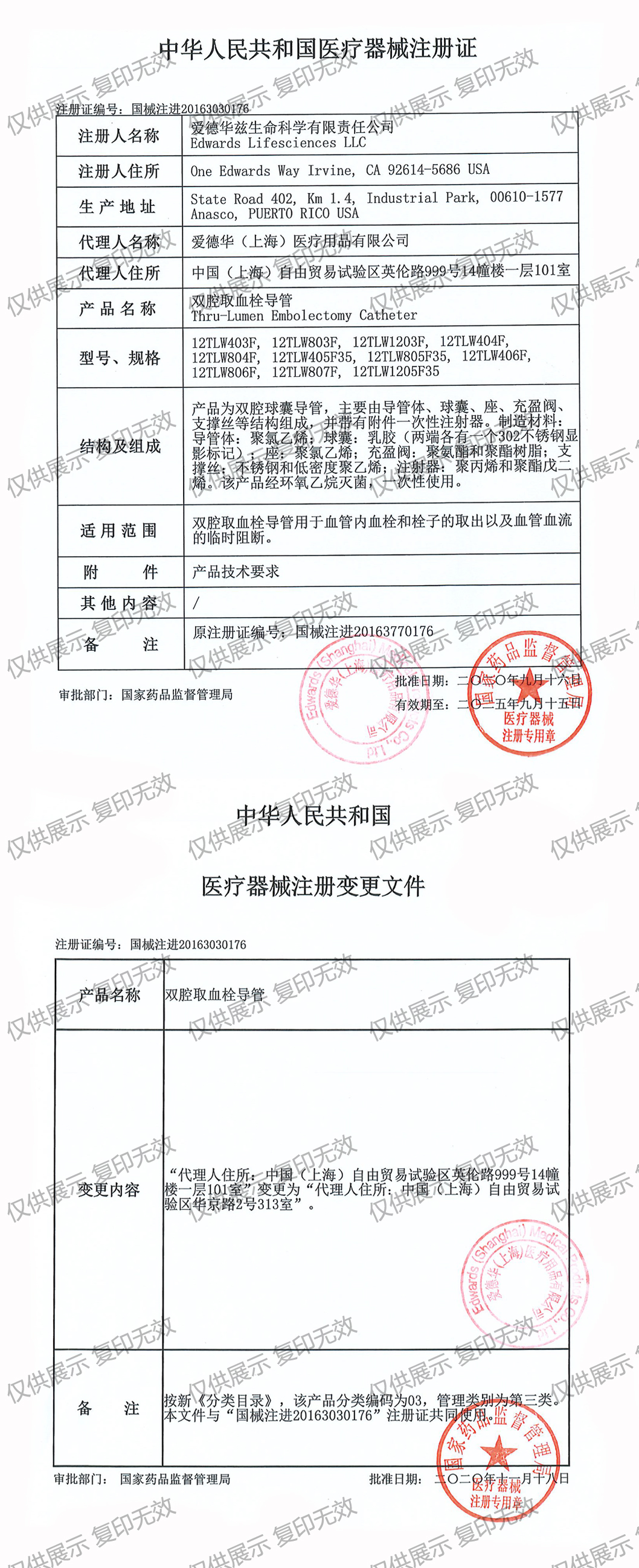 美國(guó)愛(ài)德華雙腔取血栓導(dǎo)管