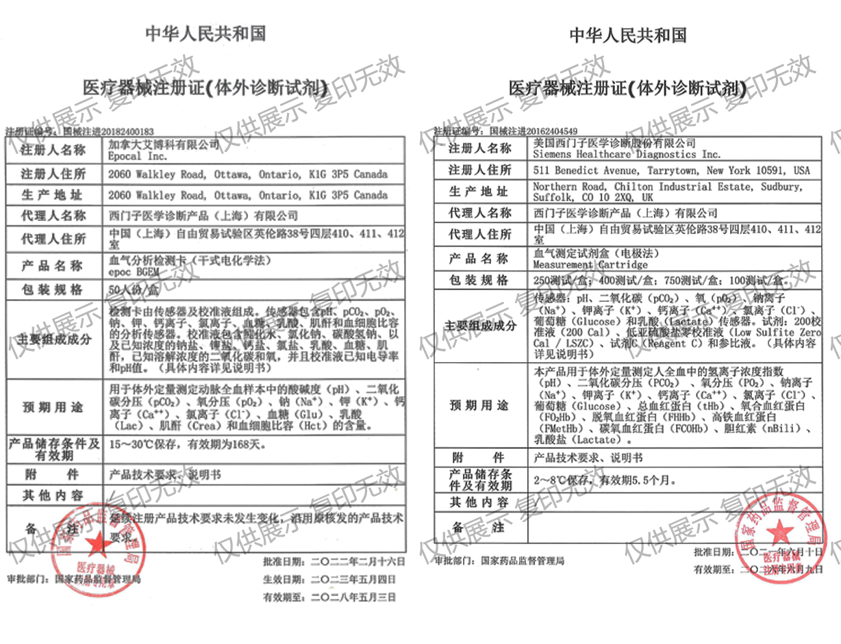epoc血?dú)夥治鰴z測(cè)卡注冊(cè)證編號(hào):國(guó)械注進(jìn)20182400183