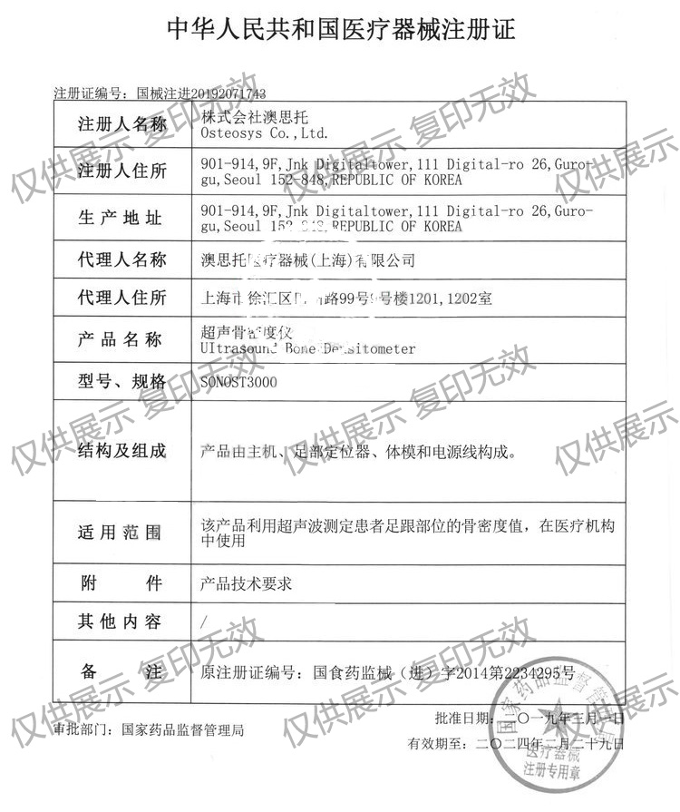 適用范圍:該產(chǎn)品利用超聲波測定患者足跟部位的骨密度值,在醫(yī)療機構(gòu)中使用。