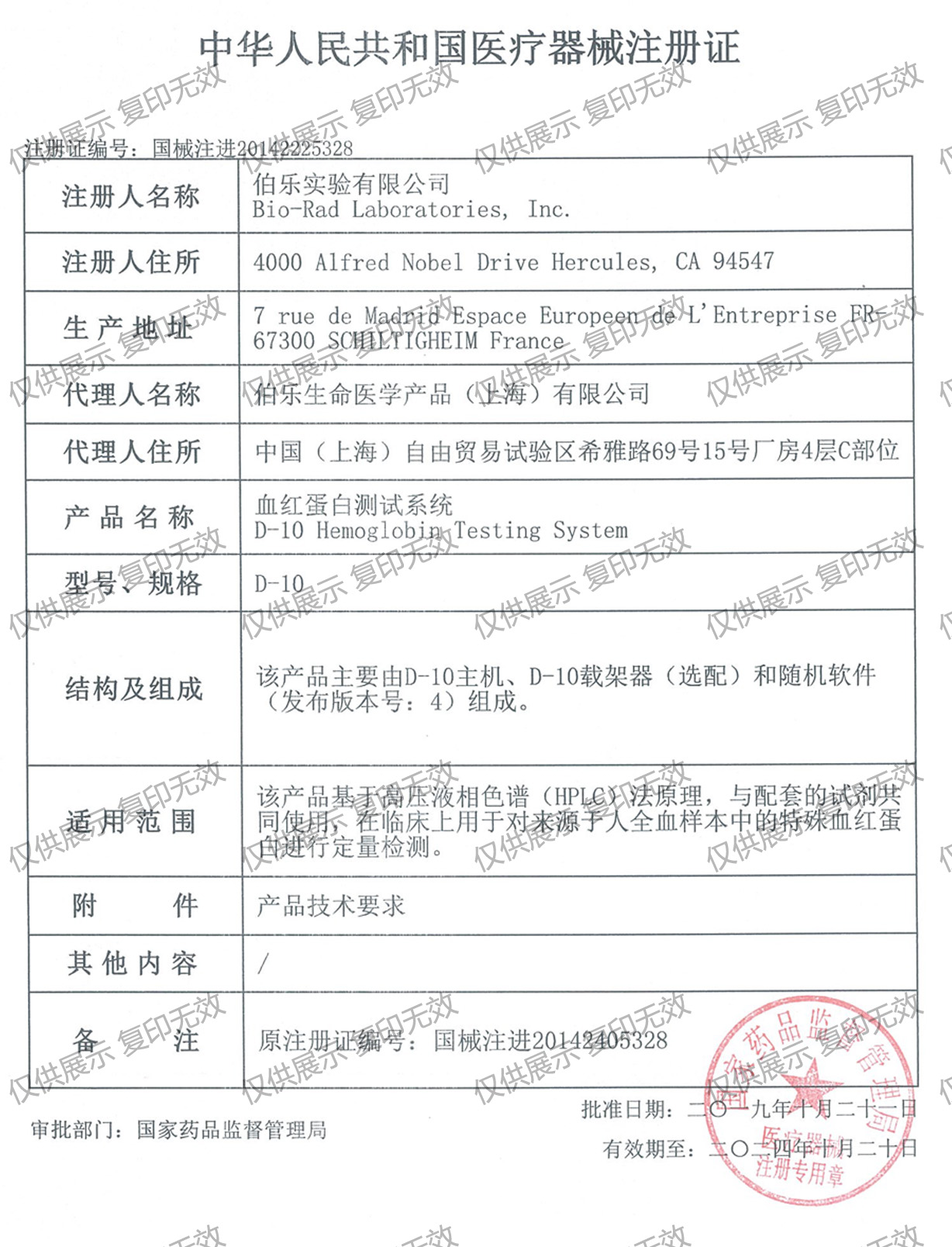 適用范圍:該產(chǎn)品基于高壓液相色譜(HPLC)法原理,與配套的試劑共同使用,在臨床上用于對(duì)來源于人全血樣本中的特殊血紅蛋白進(jìn)行定量檢測。