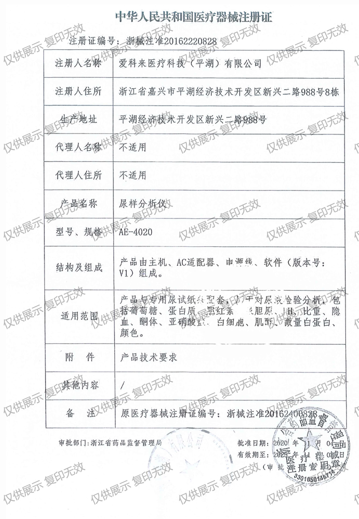 適用范圍:產(chǎn)品與*用尿試紙條配套,用于對尿液檢驗(yàn)分析,包括葡萄糖、蛋白質(zhì)、膽紅素、尿膽原、PH、比重、隱血、酮體、亞硝酸鹽、白細(xì)胞、肌酐、微量白蛋白、顏色。